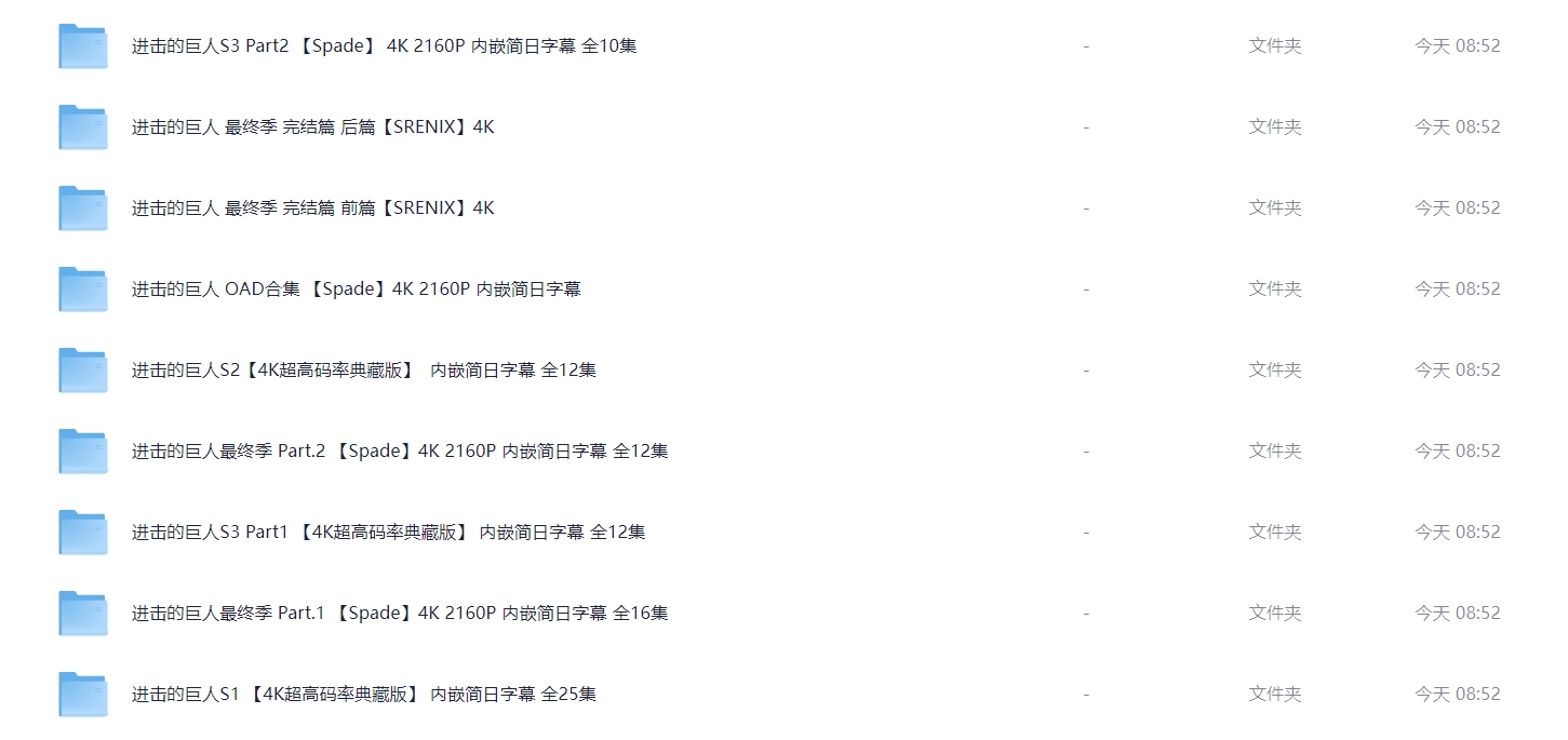 《进击的巨人》全系列完结【顶级4K典藏版】 4K超高码率 单集8G 附OVA合集 【内嵌简日双语特效字幕】 814G 栏目:动漫区 作者:虎大 时间:2025-12-02 12:27:08    **简介:** 《进击的巨人》(日语:進撃の巨人)是一部日本的黑暗奇幻动画连续剧,改编自漫画家谏山创的同名漫画。 故事发生在虚构世界,人们生活在由三道层层包围的巨大围墙所构成的世界中,围墙外面有着无数以人类为食的巨人。故事围绕着主人公艾伦·耶格尔和他的朋友三笠·阿克曼以及阿尔敏·阿诺德的经历展开。三人原本平静的生活因某日巨人破墙而入而随之改变,之后经历苦难的他们加入了专门对付墙外巨人的调查兵团。艾伦和他的朋友们发誓要将这世界上的巨人赶尽杀绝,并在之后的历练中成长为与巨人作战的精锐士兵。然而随着艾伦被发现也是巨人之一后,这个世界背后的真相被一点点揭开。故事的主题也由最初的热血复仇逐渐变成对世间的人性和正义的复杂解读。 本作在剧情、作画与配乐各方面出色的表现,使其在日本国内与海外的众多影视评论网站上获得接近满分的评价,**被认为是近年日本动画的代表作之一**。 > [!success] **资源链接** > https://pan.quark.cn/s/3bed81c6b376 版权声明:本站不存储任何实质资源,该帖为发布的网盘链接介绍帖。如您认为本站任何介绍帖侵犯了您的合法版权,请联系站长 ( 微信:bao867270 ) 进行投诉,我们将在确认本文链接指向的资源存在侵权后,立即删除相关介绍帖子!