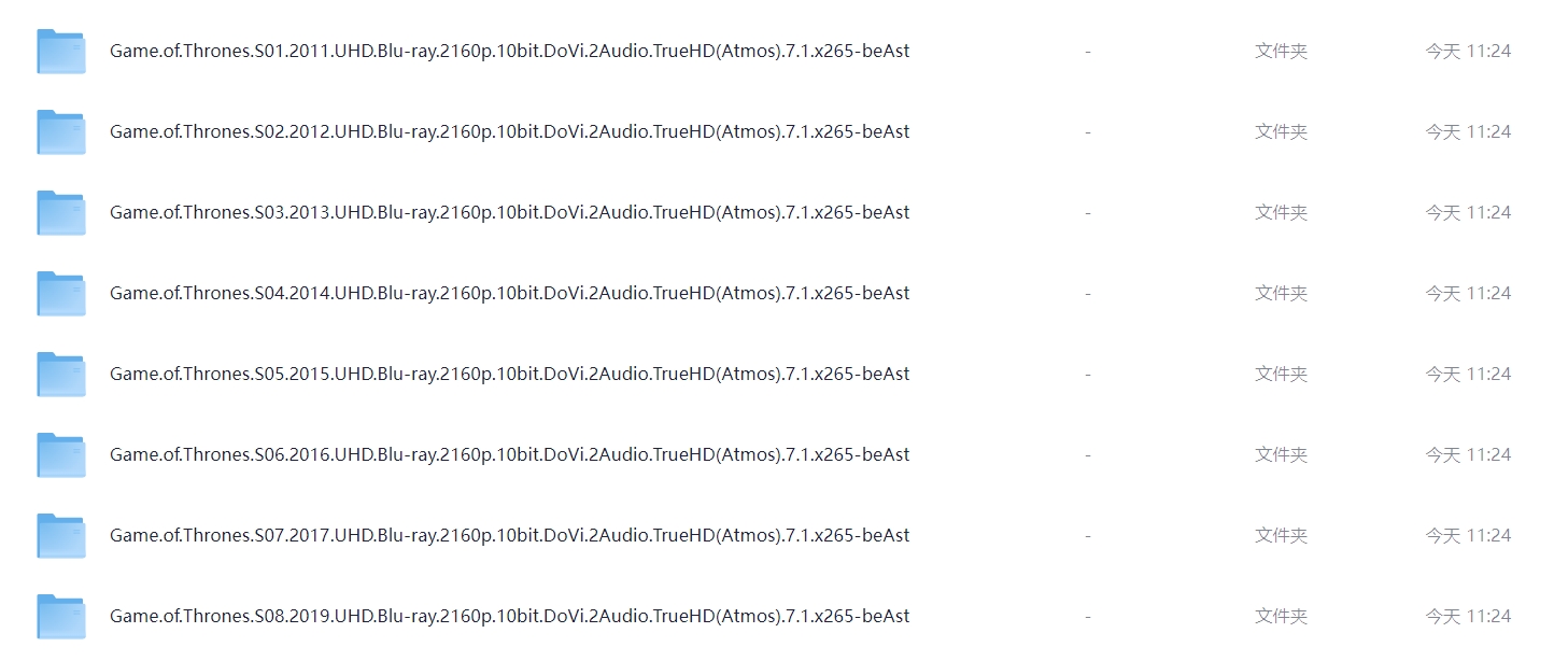 终极收藏《权力的游戏》全八季合集 【4K 蓝光HDR 杜比视界】【英简繁&双语特效SUP字幕】【1.03T】 栏目:剧集区 作者:虎大 时间:2025-12-02 14:17:15     **简介:** 《权力的游戏》改编自美国作家乔治·R·R·马丁的奇幻小说《冰与火之歌》系列,讲述了在一个虚构的世界中分为两片大陆:位于西面的“日落国度”维斯特洛;位于东面的类似亚欧大陆。维斯特洛大陆边境处发现远古传说中早已灭绝的生物开始,危险也渐渐在靠近这里。这片大陆的临冬城主暨北境统领艾德史塔克家族也迎来了老友兼国王劳勃·拜拉席恩的来访。国王希望艾德·史塔克能担任首相一职,对抗企图夺取铁王座的叛军的故事。 该剧于2011年4月17日在美国播出。该剧在2015年第67届艾美奖中破纪录斩获12项大奖,包揽了最佳剧情、导演、编剧、男配等大奖。**2016年,该剧被选为被评为最佳电视剧,同时还获评最佳剧本和最佳导演,成为艾美奖有史以来获奖最多的剧情类电视剧。**2018年,获得第70届艾美奖最佳剧集奖。2019年9月,该剧被英国《卫报》评选为21世纪100部最佳电视剧,名列第7位。 **PS:很多人反应没有字幕,使用夸克自带的播放器无法显示,夸克无法识别软特效字幕,请下载或者挂载后使用专业播放器,电脑端推荐potplayer!** > [!success] **资源链接** > https://pan.quark.cn/s/c4ede07758fa 版权声明:本站不存储任何实质资源,该帖为发布的网盘链接介绍帖。如您认为本站任何介绍帖侵犯了您的合法版权,请联系站长 ( 微信:bao867270 ) 进行投诉,我们将在确认本文链接指向的资源存在侵权后,立即删除相关介绍帖子!