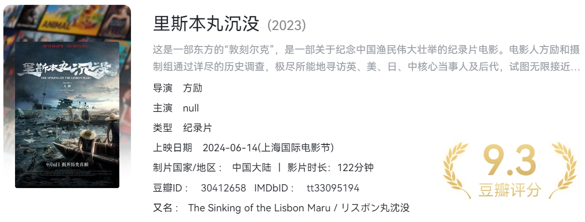 里斯本丸沉没 ( 2024 )( 4K+1080P )中字 豆瓣 9.3 强烈推荐的一部纪录片【 7.7GB 】 栏目:纪录片 作者:虎大 时间:2025-12-02 13:36:17   **剧情简介:** 这是一部东方的“敦刻尔克”,是一部关于纪念中国渔民伟大壮举的纪录片电影。电影人方励和摄制组通过详尽的历史调查,极尽所能地寻访英、美、日、中核心当事人及后代,试图无限接近中国舟山东极岛附近海底30米处的二战“死亡之船”——“里斯本丸”的沉船真相。 > [!success] **资源链接** > https://pan.quark.cn/s/7a06a236647f 版权声明:本站不存储任何实质资源,该帖为发布的网盘链接介绍帖。如您认为本站任何介绍帖侵犯了您的合法版权,请联系站长 ( 微信:bao867270 ) 进行投诉,我们将在确认本文链接指向的资源存在侵权后,立即删除相关介绍帖子!