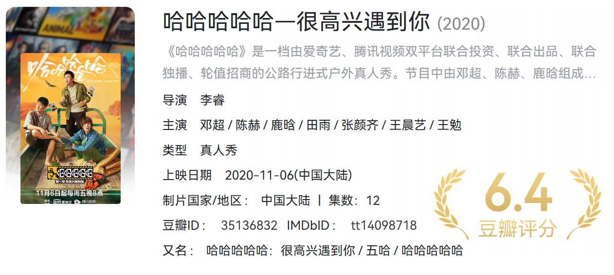 哈哈哈哈哈 第五季(持续更新中)合集 4K 国语中字 附1-4季 【约181.4GB】 栏目:综艺区 作者:虎大 时间:2025-12-02 12:35:05   **简介:** 五哈系列综艺,影视平台付费节目,这里持续更新。。。 > [!success] **资源链接** > https://pan.quark.cn/s/6f9b2d4c9bd4 版权声明:本站不存储任何实质资源,该帖为发布的网盘链接介绍帖。如您认为本站任何介绍帖侵犯了您的合法版权,请联系站长 ( 微信:bao867270 ) 进行投诉,我们将在确认本文链接指向的资源存在侵权后,立即删除相关介绍帖子!
