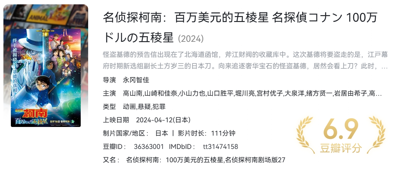 名侦探柯南:百万美元的五棱星(2024)【蓝光原盘REMUX】 内封简繁特效字幕【17.9G】 栏目:动漫区 作者:虎大 时间:2025-12-02 12:28:44   **简介:** 怪盗基德的预告信出现在了北海道函馆,斧江财阀的收藏库中。这次基德将要盗走的是,江戸幕府时期新选组副长土方岁三的日本刀。向来追逐奢华宝石的怪盗基德,居然会看上刀?此时,被称作西部名侦探的服部平次和柯南一行人,也因为剑道大会来到了函馆,在基德执行预告的当日,平次看穿了基德的伪装并对其穷追不舍!同一时间,一具尸体在函馆仓库街被发现,尸体的胸口有一个十字伤口。搜查中,出现了一位被叫做“死之商人”的活跃于亚洲一带的美籍日裔军火商。这个人一直在寻找斧江家初代家主藏在函馆的宝藏。斧江家江戸幕府战争时代深耕军需产业,传说那宝藏是能扭转幕末纷争的强力武器,而这宝藏似乎和基德追逐欲盗取的刀有着千丝万缕的联系。在基德瞄准刀的同时,有一位剑士也在向基德逼近…… > [!success] **资源链接** > https://pan.quark.cn/s/f253bb3c9822 版权声明:本站不存储任何实质资源,该帖为发布的网盘链接介绍帖。如您认为本站任何介绍帖侵犯了您的合法版权,请联系站长 ( 微信:bao867270 ) 进行投诉,我们将在确认本文链接指向的资源存在侵权后,立即删除相关介绍帖子!